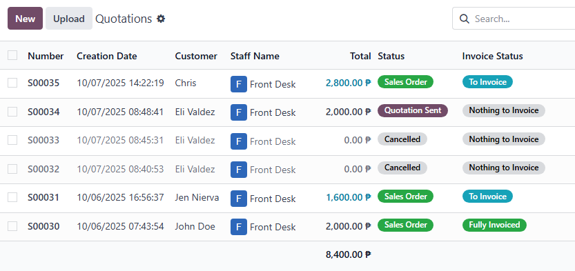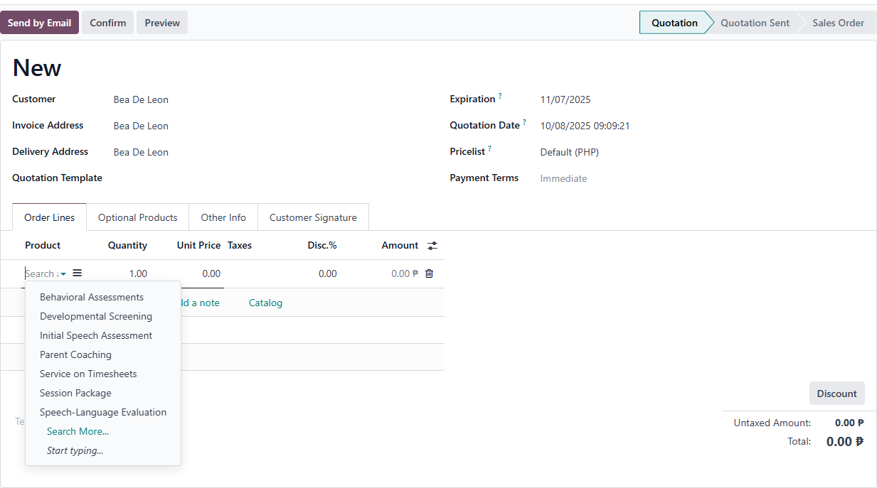 Front desk staff prepare quotations for therapy packages or single sessions.